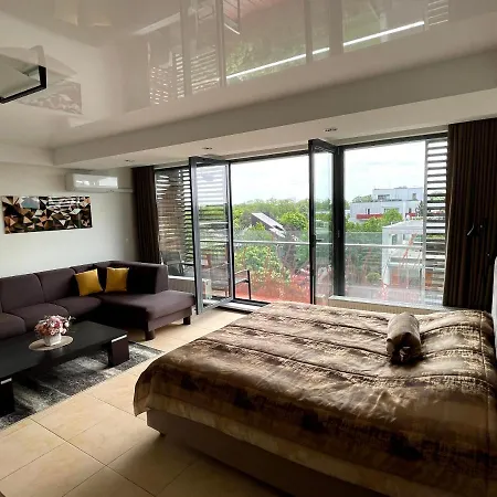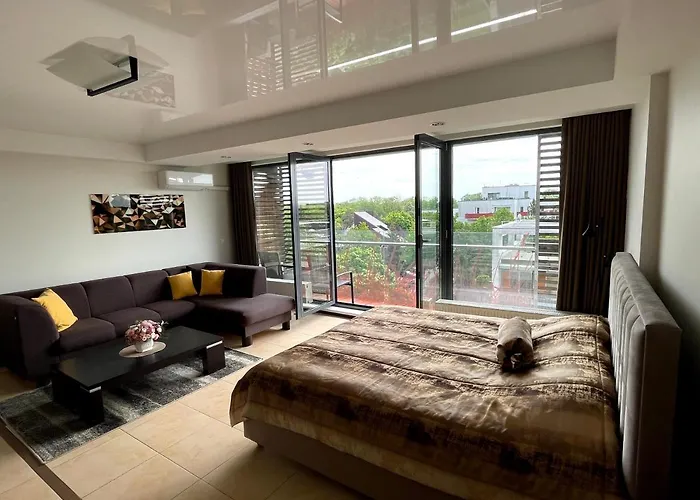Con vistas a la ciudad, esta propiedad cuenta con una terraza y una zona de estar equipada con climatizador y lavadora. El Mini Sun Apartments With Private Garage Parking incluye 1 dormitorio. Los visitantes del apartamento disfrutarán de la comodidad de un cuarto de baño con secador de pelo, toallas y zapatillas. También encontrarás inodoro separado y ducha.